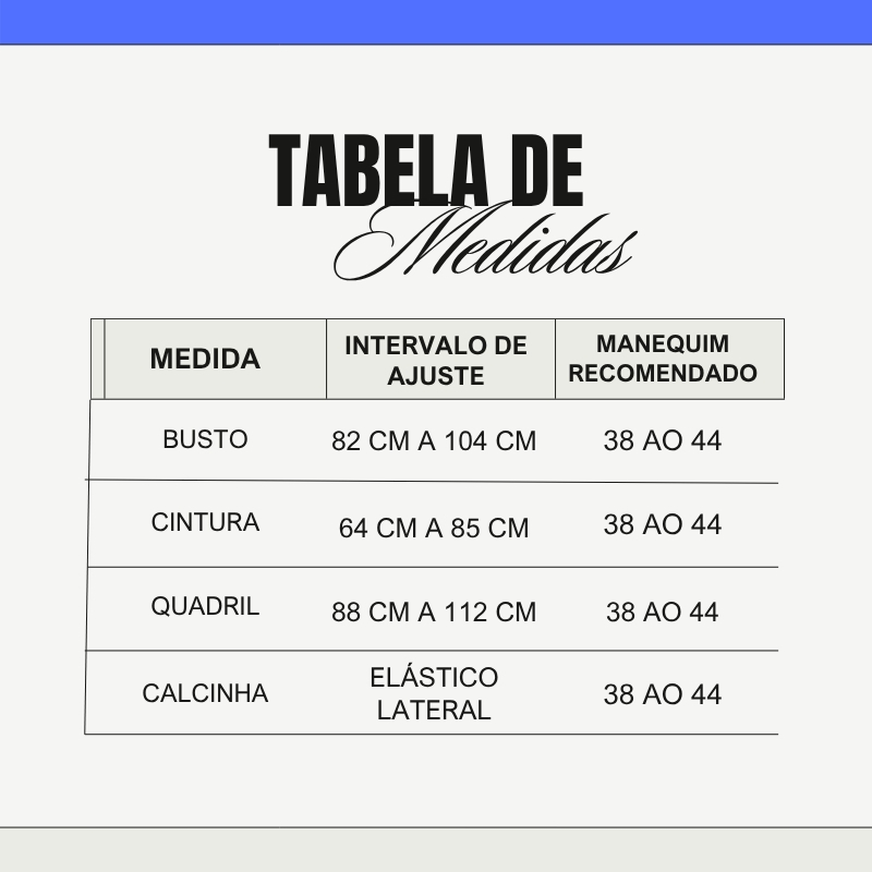 • Tamanho: Único (veste aproximadamente do 36 ao 42);