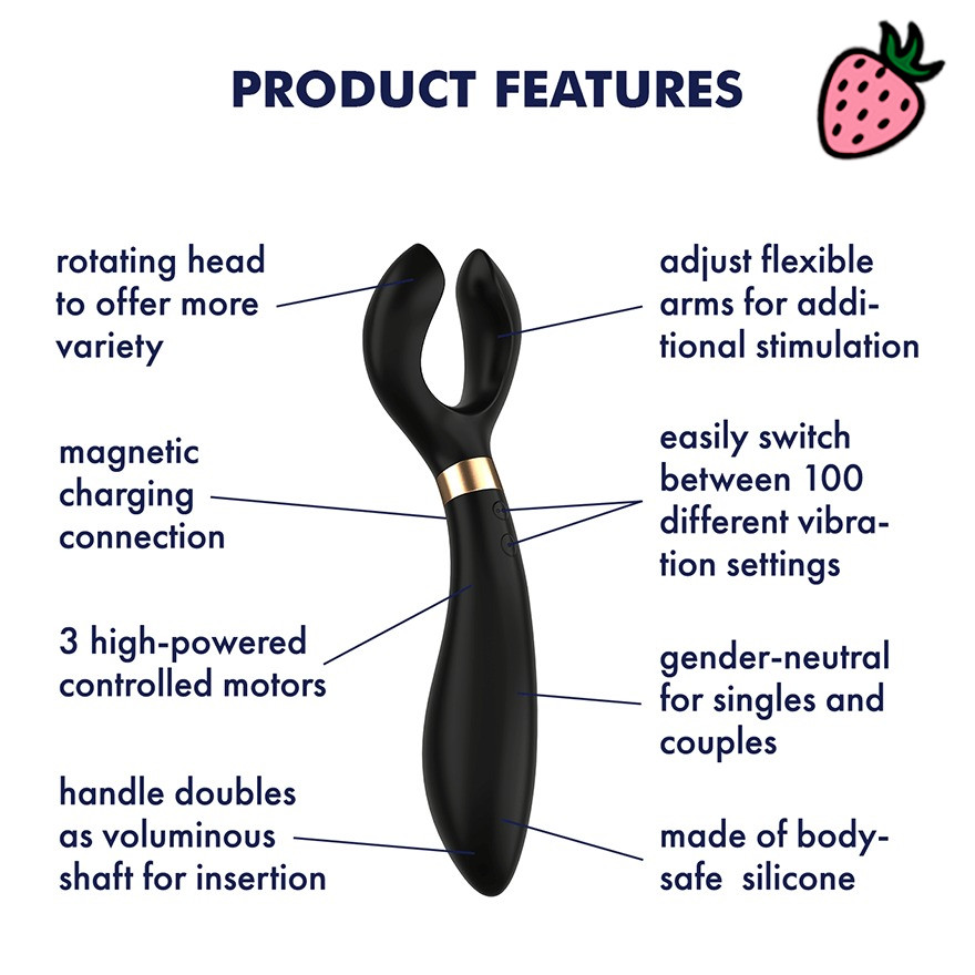 O Satisfyer Endless Fun se destaca com seus três motores super poderosos localizados em suas três pontas, cada um oferecendo 10 programas de vibração.