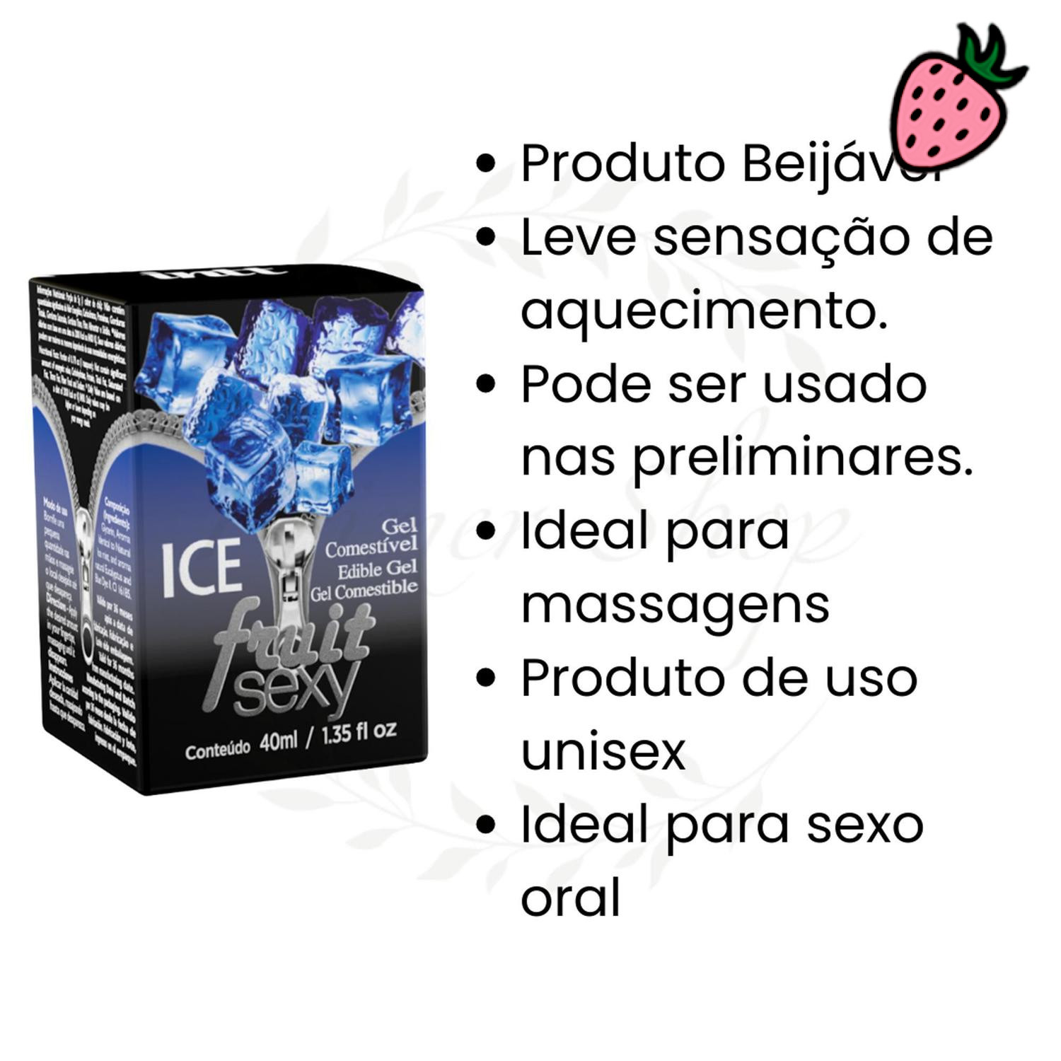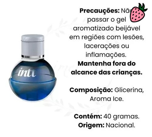 • Contém: 01 Fruit Sexy Gel Beijável Sabor Ice Extra Forte 40ml Intt;
