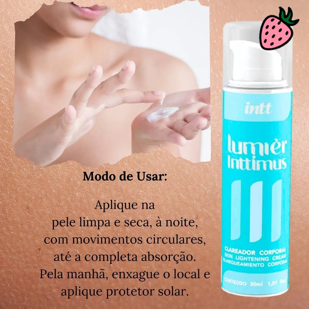 Lumiér Inttimus é um clareador corporal desenvolvido especialmente para áreas com tonalidade mais escura, como axilas, virilha e outras regiões do corpo. Com efeito rápido e duradouro, o produto uniformiza a tonalidade da pele, deixando-a mais iluminada e suave.