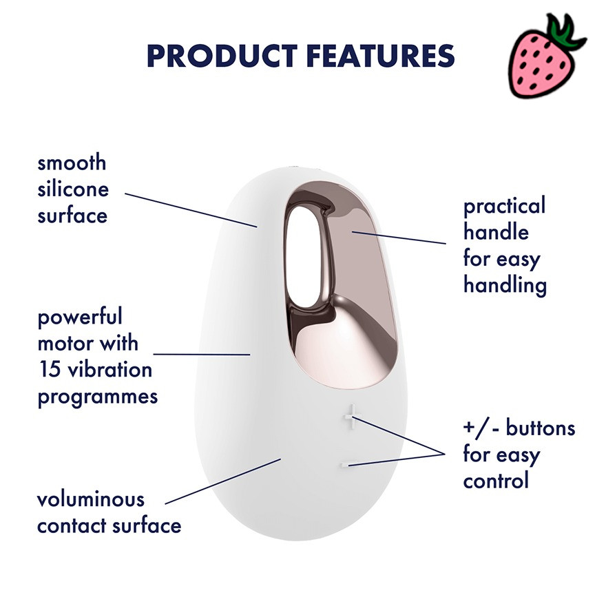 O Satisfyer White Temptation é facilmente limpo com um pouco de água morna, sabão neutro e um Toycleaner desinfetante. Não importa onde você escolha utilizar este objeto de prazer – certamente terá momentos emocionantes sozinha ou acompanhada!